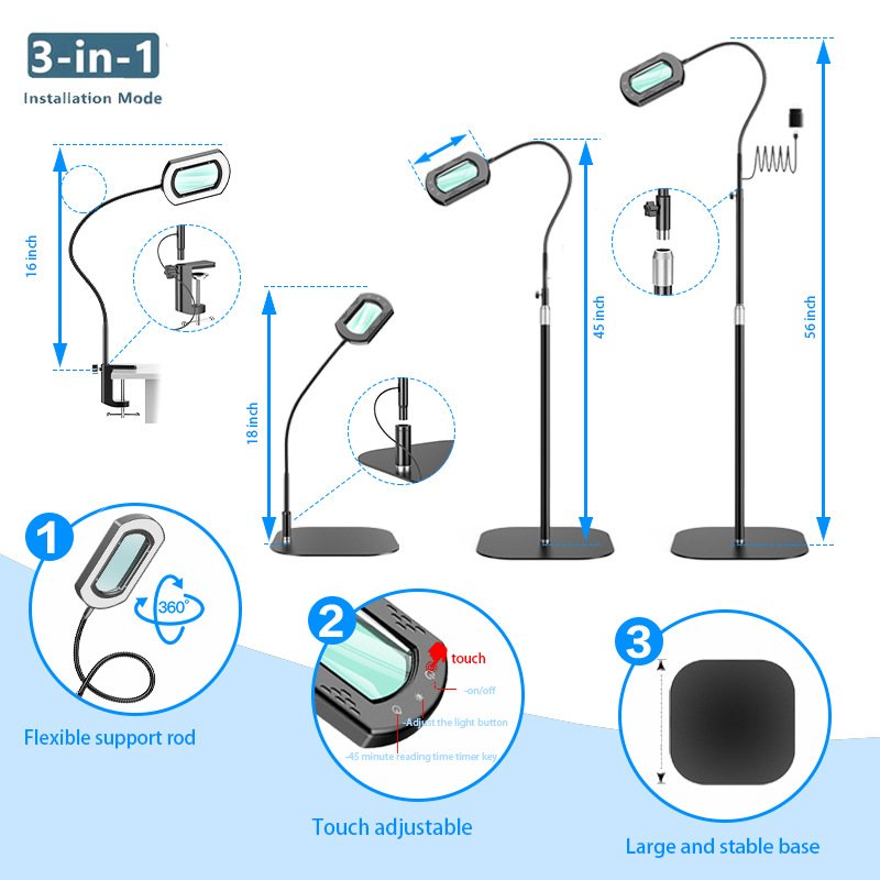 方型LED触摸放大镜灯电子维修工作台灯美睫纹绣落地灯护眼灯